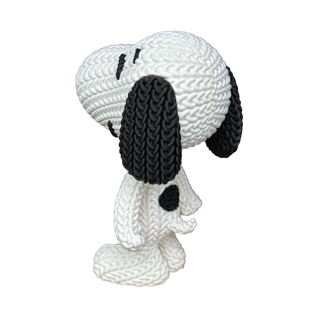 The model is designed to mimic the look of hand-knitted or crochet work, featuring detailed stitch-like textures across Snoopy’s body, ears, and facial features. It blends the cozy charm of fiber art with the precision of modern 3D printing—making it a perfect display piece for a desk, shelf, or collector’s display. Originally designed by Whale 3D Studio and lovingly 3D printed by Makerwiz, an Authorized Maker of the designer’s work.